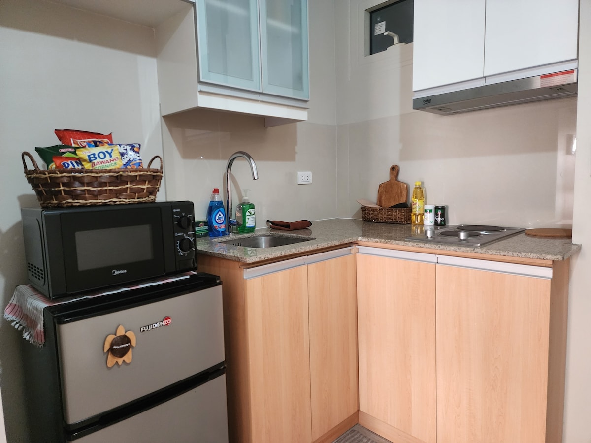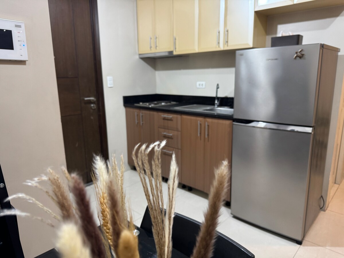 Olllaa I’m Bella! My unit is a 32sqm studio w/ Balcony Boho-Modern style getaway at One Palm Tree Villas in Newport, Pasay City! -Conveniently located just a 3-5 min walk from NAIA Terminal 3 via Runway manila. - High speed Wifi (150mbps) -Netflix/HBO-Go/Youtube -Free access to Pool -Complete with basic essentials,Hot and cold shower, complete Kitchen utensils and can cook Perfect for travelers seeking comfort and accessibility. Enjoy easy access to nearby restaurants, salons and many more..