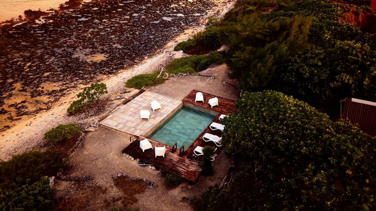 Fakarava - Teariki Lodge<br><br>Offering a harmonious blend of simplicity and comfort, our bungalow is perfect for travellers seeking tranquillity and the gentle atmosphere of the islands. Ideally located just a few steps from the ocean, breathe in the sea air, watch the whales in season, and admire the lush vegetation surrounding the property. Enjoy a stroll along the beach with its typical Tuamotu sand and coral floors, or cool off in the property's saltwater pool.