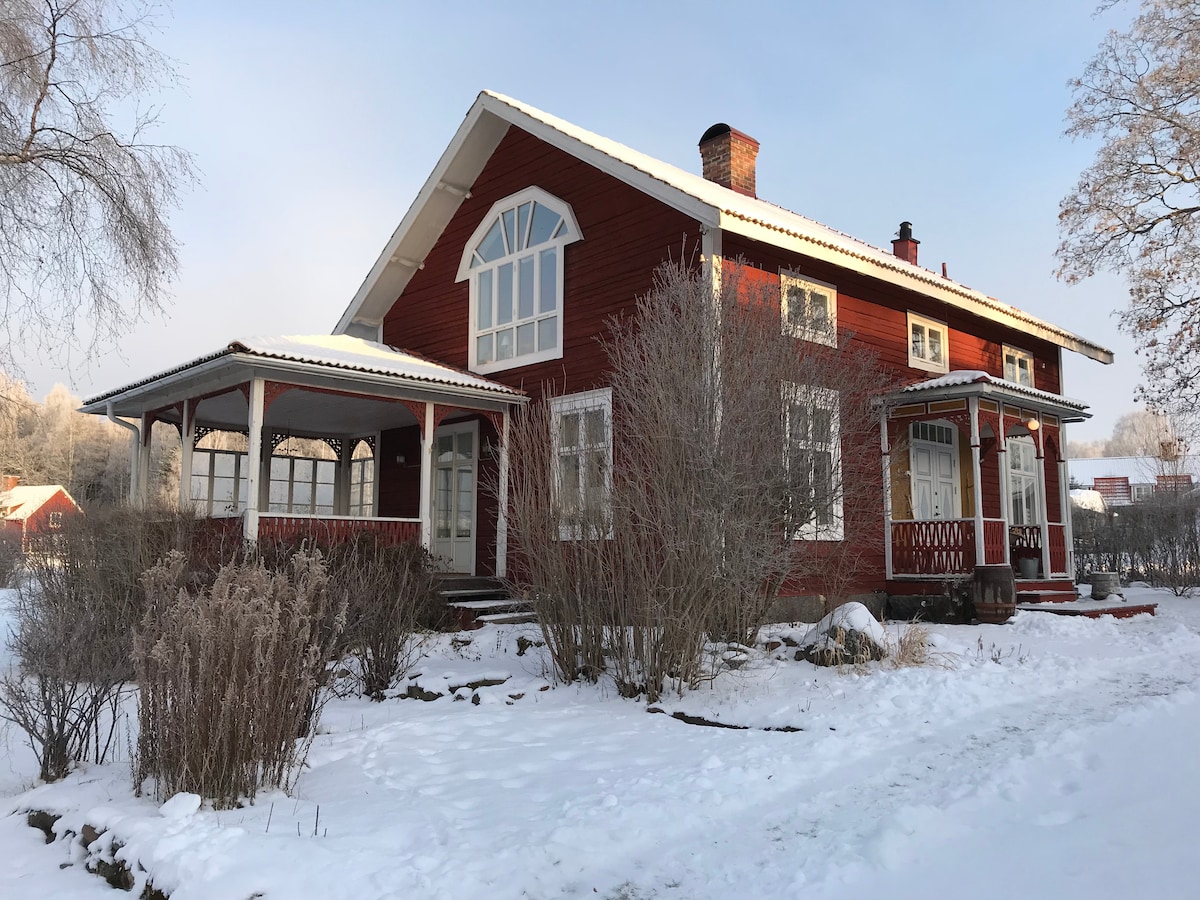 Here you live in a cozy timber house from 1909 with modern amenities. Walking distance to Ludvika's range of shops and restaurants. In winter, there are good opportunities for skiing, both in tracks and downhill. Romme alpine is 30 minutes away. Summer time there is possibility for fishing in Övre Hillen. Fish from the jetty or rent our plastic boat with electric motor (SEK 150/half-day 8-12, 12-16). Fishing license SEK 50/day.