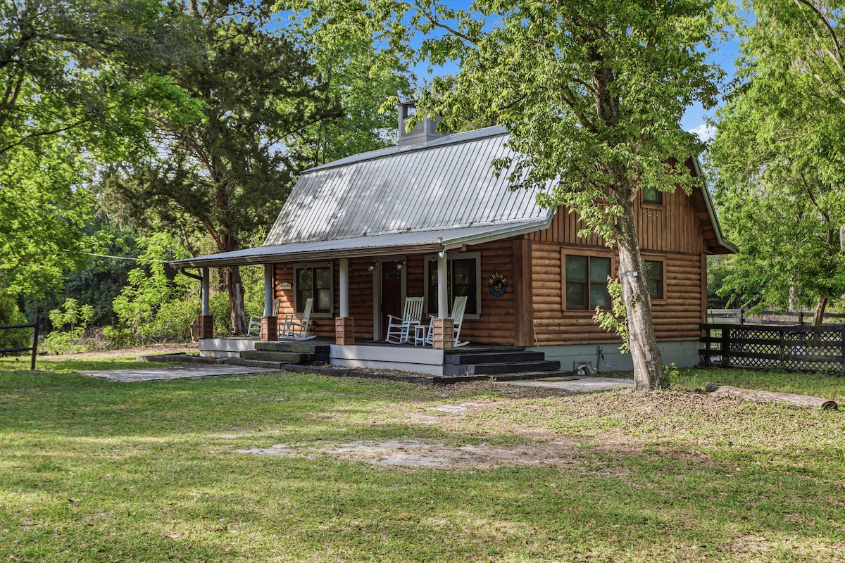 New Hideaway Western Theme Cabin Amish made real log cabin nestled among trees and wildlife (lots of deer) Minutes away from Ginnie, Ichetucknee, Poe, and Blue Springs Kayakers and Canoes love our convenience to rivers and springs Fire pit and FREE FIREWOOD onsite(enough for one fire) FREE WIFI INSIDE CABIN Large private property with lots of trees Relax on the porch or around the fire and make some awesome memories in your private log cabin This is a no pet cabin