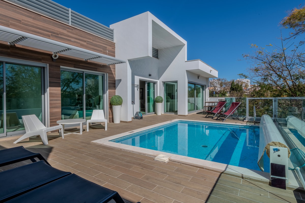 Wake up to panoramic ocean, city and countryside views from this luxury 3-bdrm villa above Lagos. Enjoy a private heated pool, spacious sun deck and peaceful gardens, just 3mins drive to beaches and Lagos town. Bright, stylish and high-quality interiors offer comfort and space for up to 5 guests, ideal for families or groups seeking tranquility. Outdoors: • Private heated pool • Sun terrace w loungers • Landscaped gardens • Shared Playgrounds Prime location in exclusive area, near everything.