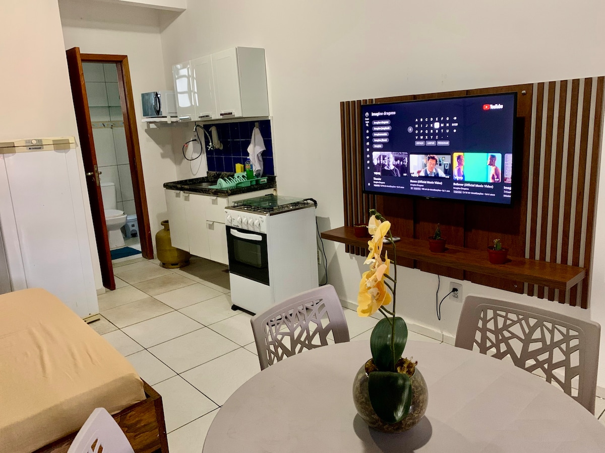 Studio Located in the Ondina neighborhood, on Rua Escravo Miguel, on the Carnival circuit, near the Barra waterfront, 35 minutes from the International Airport Dep. Luis Eduardo Magalhães, with easy access to the beaches and the main tourist attractions of Salvador, such as Farol da Barra and Pelourinho. FUMIGATED, DISINFECTED AND SANITIZED BY A SPECIALIZED COMPANY. NEW PAINTING, NEW SOFA BED AND NEW TV. DAILY CLEANING.