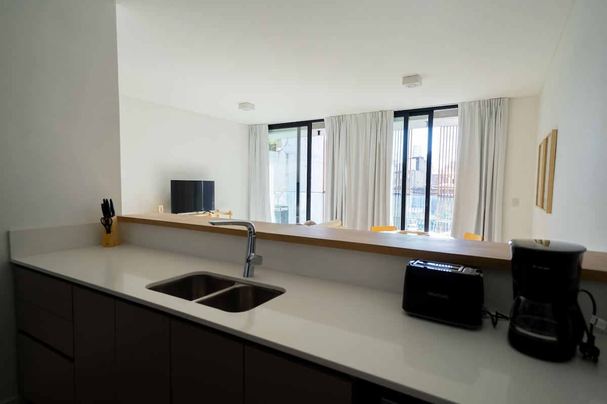 Forget your worries in this spacious and serene space. Bright and modern studio for 1-2 people. Located in Villa Crespo, very close to Palermo and Chacarita, a very quiet and residential area with bars, restaurants, an outlet area, supermarkets, and parks. With multiple means of transportation for the whole city (subway line B, Metrobus and bike lanes). Close to milongas, tango academies, and the Movistar Arena