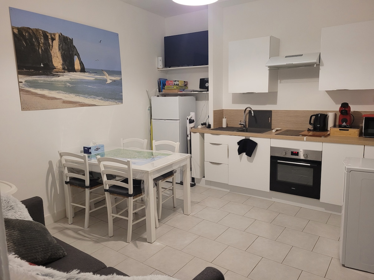 Townhouse close to the beach, the port, the Bénédictine (300 m) and a ten-minute walk from the train station. The house consists of a large living room with open-plan fitted kitchen, a 15 m2 bedroom, a bathroom with walk-in shower and separate toilet. Are you traveling with your vehicle? The accommodation has a large private garage with electric door fully at your disposal. The house is ideally located to discover Fécamp and its many walks.