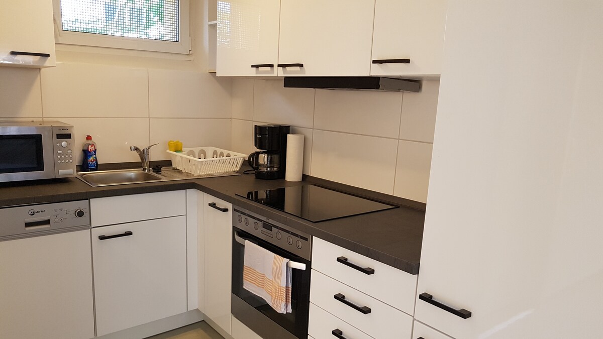 The 2-room apartment is located on the 1st floor, is about 42 square meters and has a living room, bedroom, separate kitchen and bathroom with bathtub. The apartment is newly renovated and fully equipped to a high standard. If necessary, the washing machine and dryer in the basement can be used free of charge*. In summer, the garden is also available for shared use.