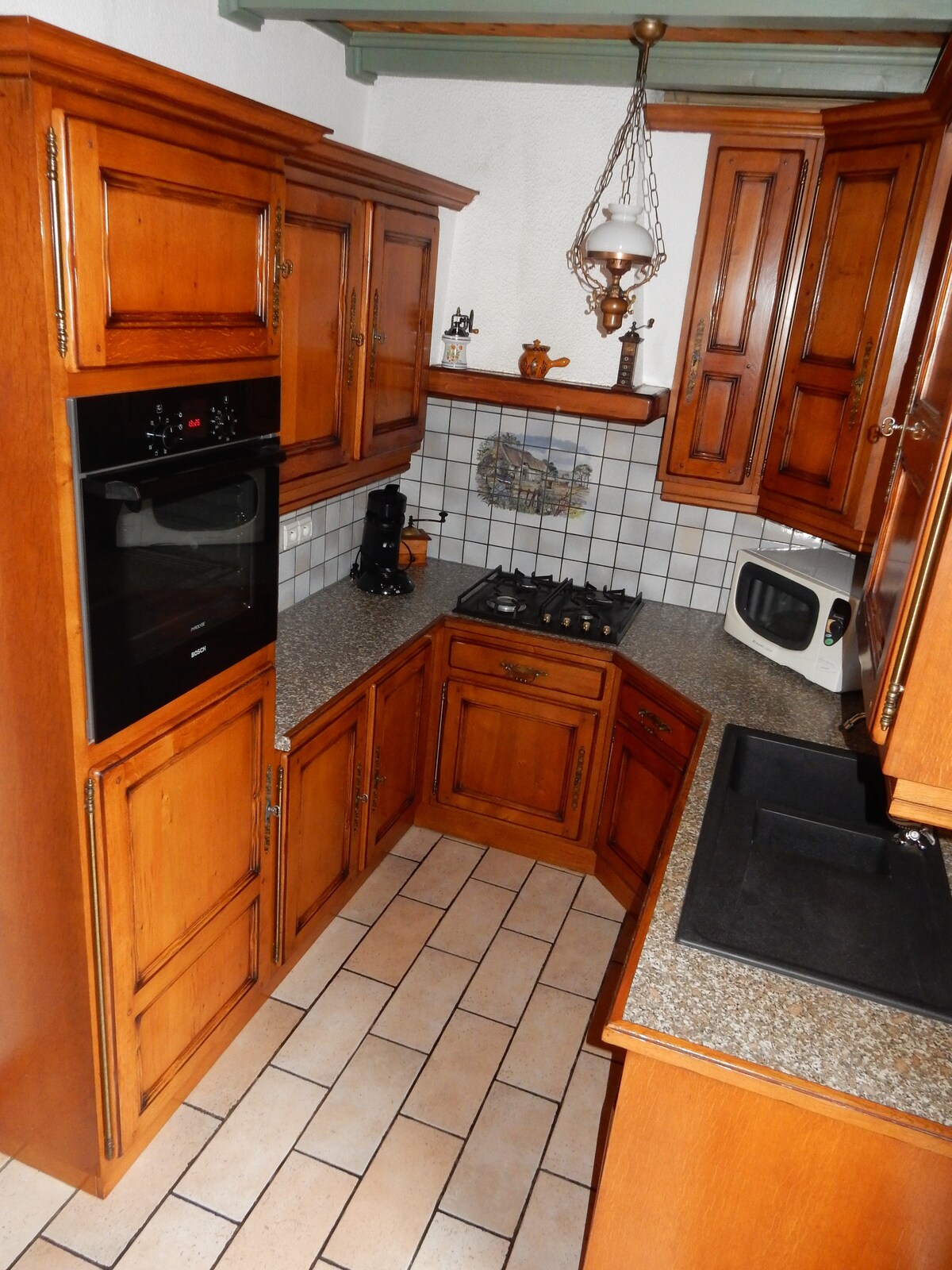 Gîte in a chalet on the heights of Fellering. It is located on the ground floor, 3 bedrooms (2 double beds and 2 single beds), living room, fitted kitchen, 2 bathrooms, 2 toilets. Private covered terrace, courtyard, green space. Possibility to rent the cottage for 2 or 4 people upon request. Panoramic view of the peaks of the Vosges. Located 30 min from the ski resorts and 40 min from Colmar. Several hiking trails nearby, paragliding area, museums, shops and Wesserling Park 5 min away.
