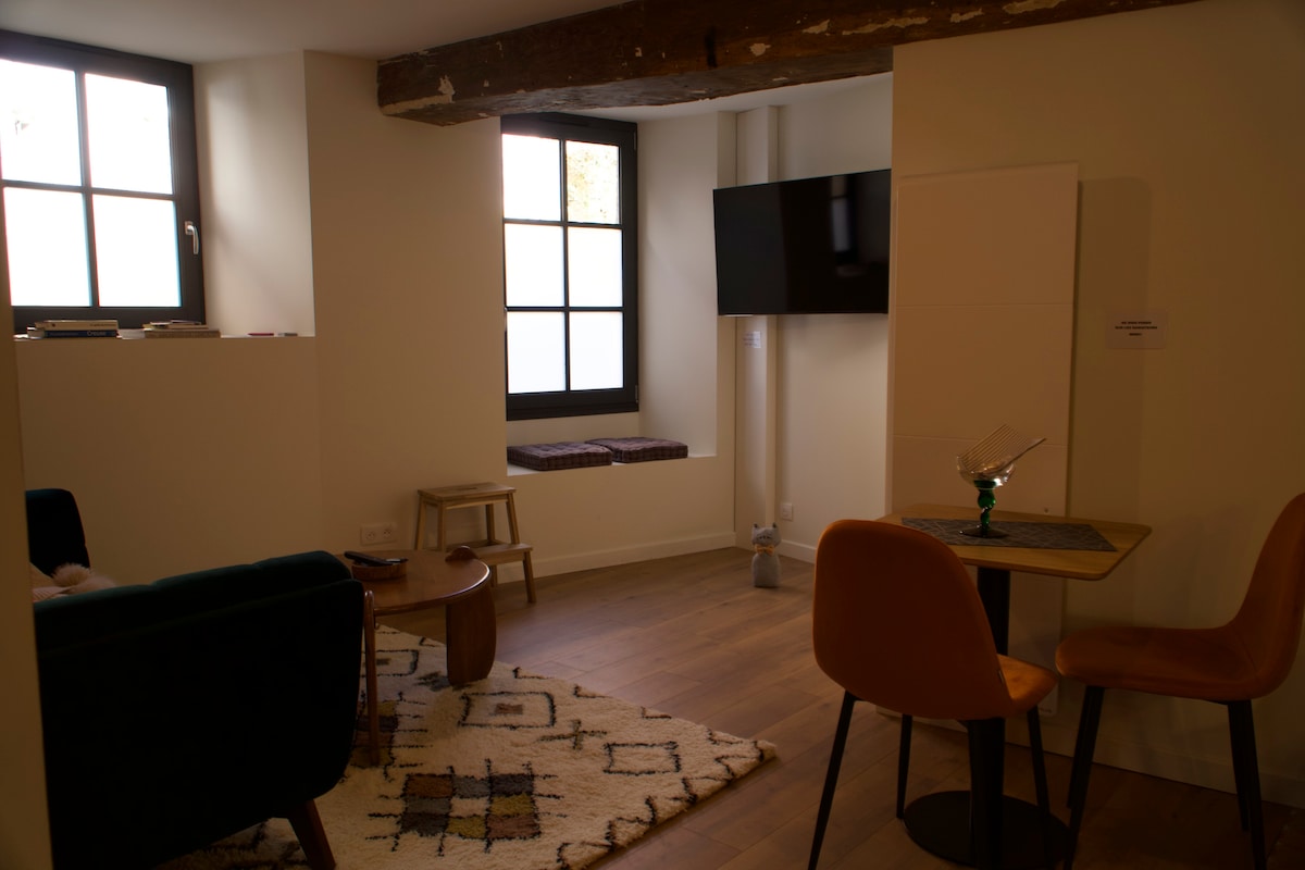 I welcome you on the ground floor of my house located in the heart of the historic district of Aubusson. It is a 30 m2 non-smoking accommodation with kitchen and living room. The equipped kitchen overlooks a small private courtyard. The living room sleeps 3 people, with a double bed in 140 and a single bed, wifi and TV. The bathroom on the ground floor is private at the accommodation but is located outside the living room, only the toilets at the entrance of the house are in common.