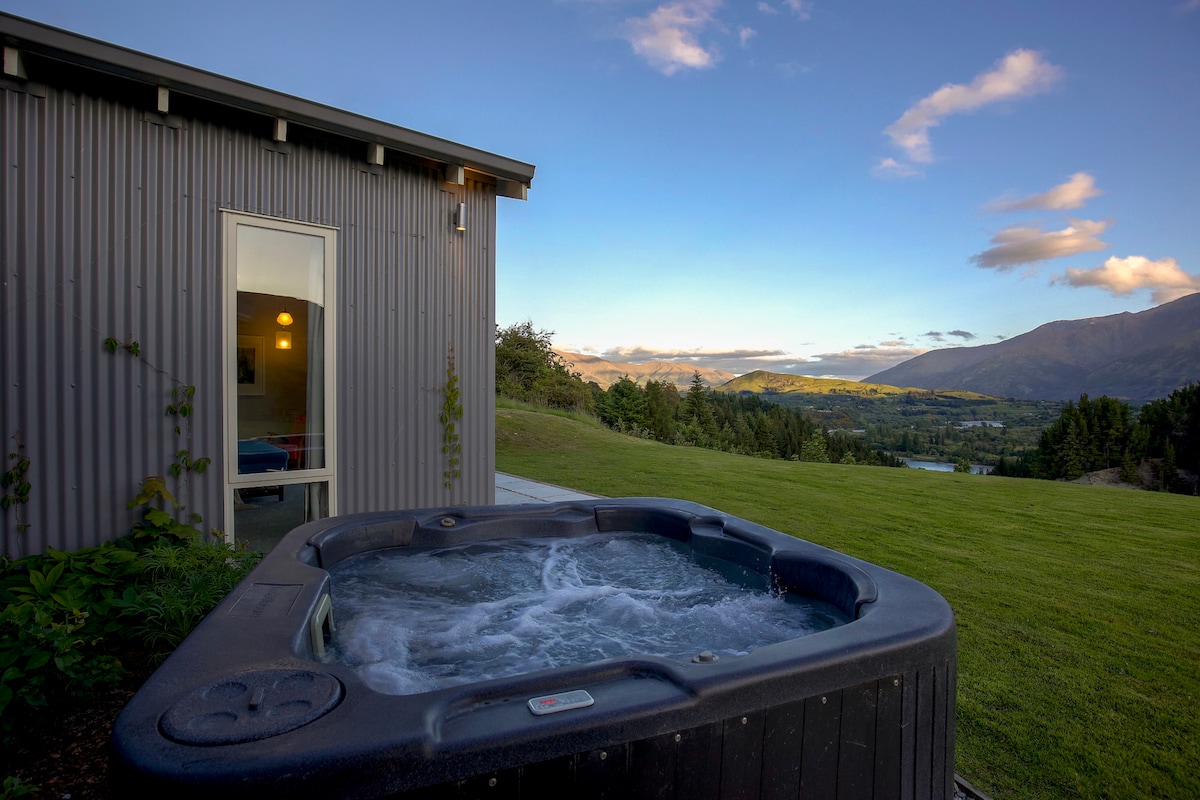 -Spectacular mountain views -Private rural setting. -Fully self-contained guesthouse -Spacious open plan living and kitchen -Wild native birdsong -Exclusive use wood-fired hot tub - Additional $85 -Outdoor bath (or plunge tub) under twinkling stars -5 minutes drive to 5 Mile shopping centre -20 minutes drive to Queenstown -150m from twin rivers trail -4 bikes and helmets -Remarkable’s and Coronet peak ski fields - 30 minutes away -Washing machine, clothes drier and powder -Off street parking
