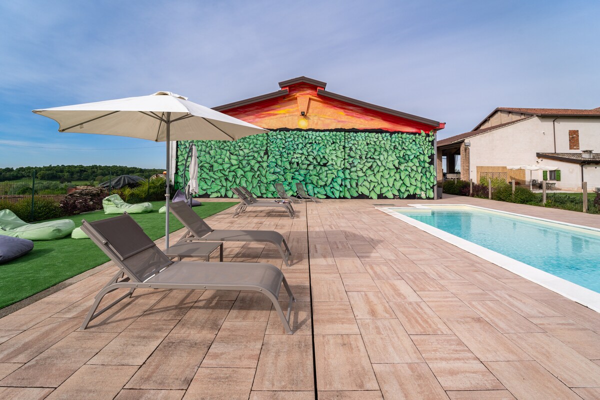 ADULTS ONLY-Open Space a piano terra inserito in una struttura moderna e dalle linee minimali,dotato di piscina condivisa tra i nostri ospiti e zona solarium con lettini super comfort. La cucina è completa di tutto il necessario per cucinare, i letti sono confortevoli e i materassi di ottima qualità. Fornite di asciugamani,lenzuola,accappatoi,ciabatte,teli piscina e posto auto. A 2 km dal Lago di Garda,dall'uscita dell'autostrada e dalle spiagge. Ha 1 posto auto riservato.