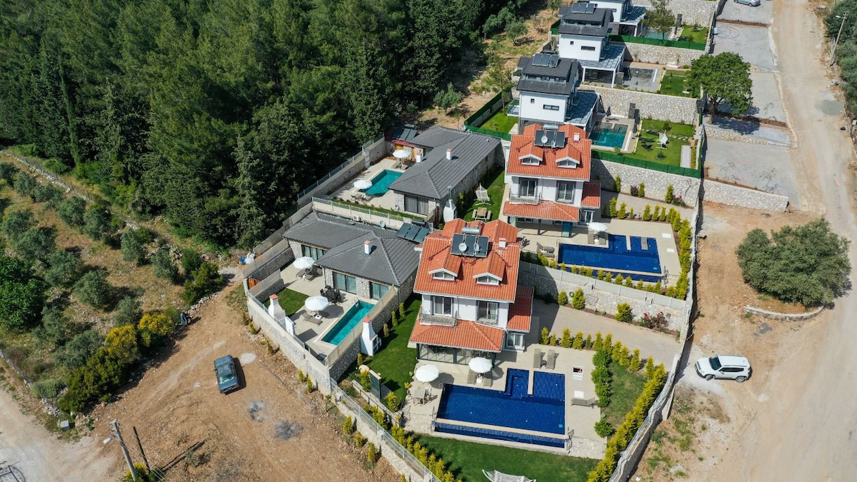 This unique and tranquil holiday villa is a great place with a pool, a jacuzzi with a pool, away from the hustle and bustle of the city and just as close to the city as possible... A special place with the sounds of birds 300 meters from the village center and 15 km from Calis Beach and 20 minutes from Çalış Beach