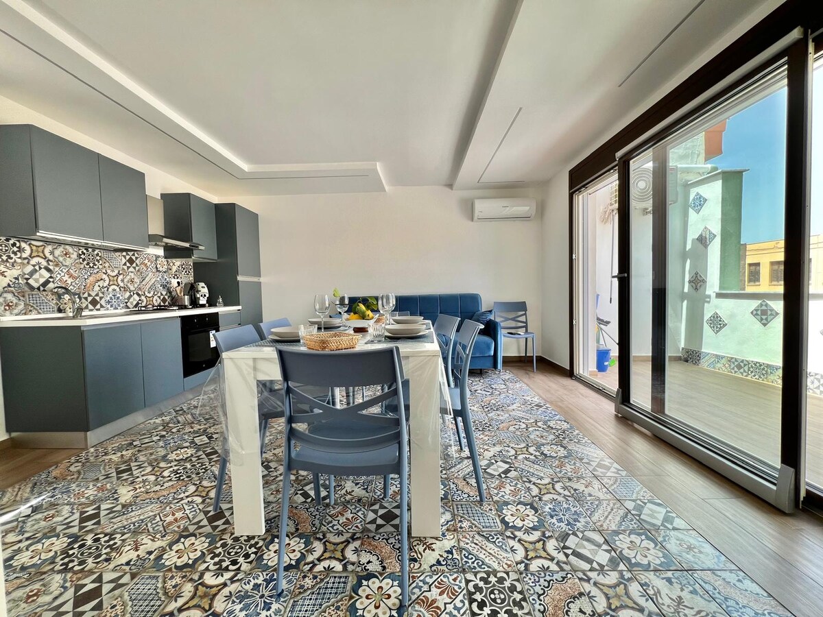 Super centrally-located apartment at the top of a palazzo in the heart of Kalsa, the trendiest neighbourhood in Palermo historic centre. If you manage to make it up the 4th floor of steep stairs (no lift), it will be worth it! The flat has been completely renovated by me, Roman architect who after 10 years of practice in London has decided to move to Palermo and open a studio here. The flat has 2 beautiful terraces, 1 bedroom 1 large kitchen living room, a study and 1 bathroom.