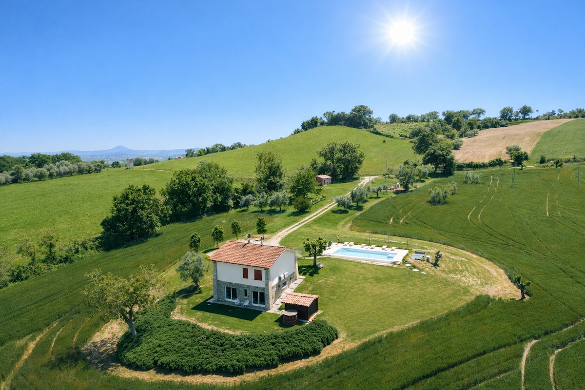 VILLA ADELE is an elegant residence nestled among the rolling hills of the Marche region, perfect for families and groups seeking nature, tranquility, and comfort. From the panoramic terrace and the pool, you can enjoy beautiful sunsets. The spacious interiors, fireplace, and professional kitchen make it ideal for moments of pure relaxation and well-being. PRIVACY AND EXCLUSIVE USE the villa is entirely for your exclusive use: you will not share any spaces with other guests.