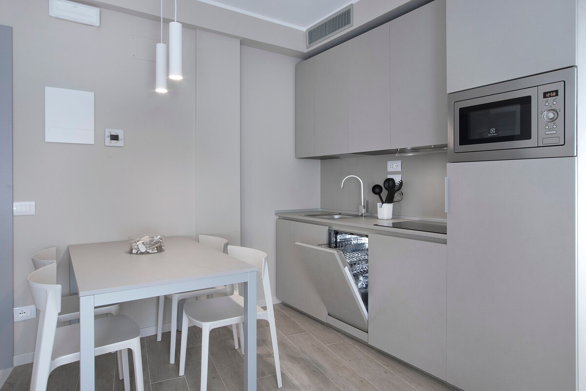 New and spacious three-room apartment with two double bedrooms and two bathrooms, furnished in a modern style, tastefully renovated, attention to detail, warm and welcoming colors, lighting and high quality accessories. Located on the first floor of the "Residence Dolcemare," ideal for those looking for spacious and comfortable accommodations.