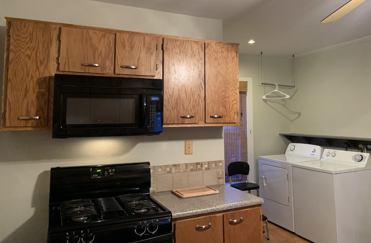 Private spacious suite with separate entry and brand new bathroom. You will have the entire walkout lower level with a full bathroom including laundry. Beautiful queen bedroom set. Comfortable sectional with chaise ready for you to put your feet up and unwind. This has a pullout queen size bed for extra sleeping. Game table stocked with supplies. Coffee bar with all of the essentials including a mini fridge and microwave. You can even get your exercise in with using the treadmill.