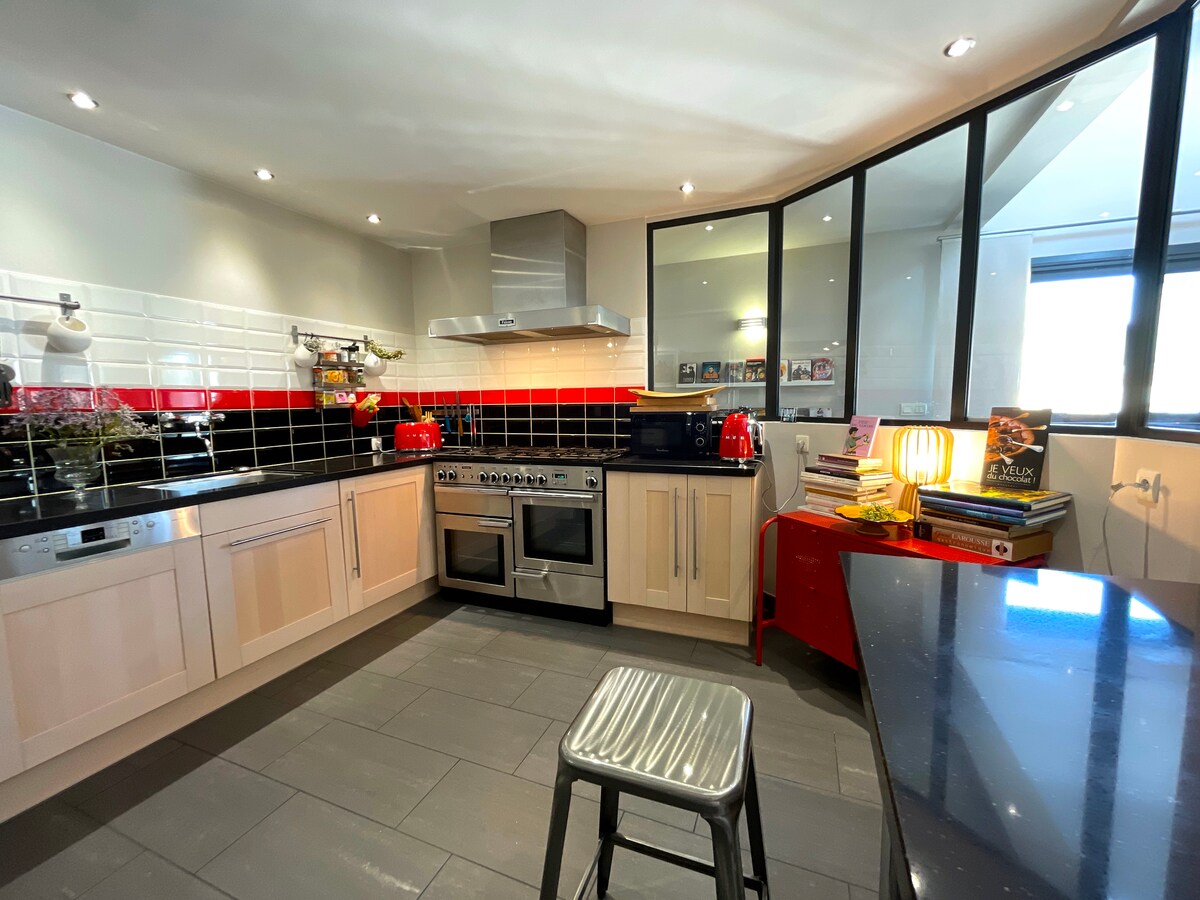 This bright loft, right in the city centre, offers you plenty of space, a unique atmosphere and character. Located on the ground floor of a small four-storey building, overlooking a quiet street, it features a small landscaped courtyard with a barbecue and a dining area. Designed by an architect, it will captivate you with its varying levels, its concrete and glass walkway, and its unique layout.