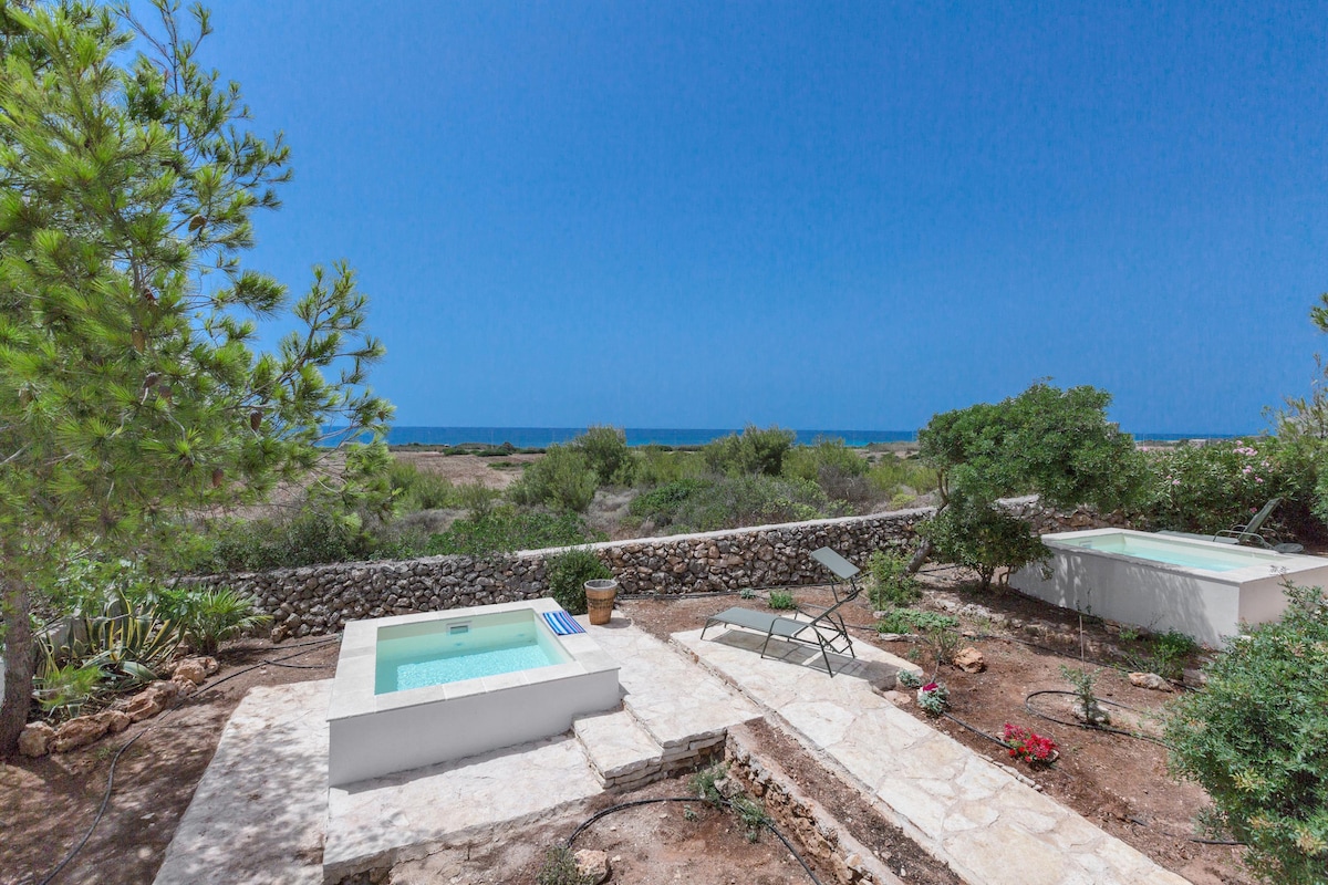 A unique location in the Porto Selvaggio Park, facing the sea, surrounded by prickly pears, bamboo canes and Mediterranean scrub, with an eco-pool and private garden. Elegant and refined, with a minimal style, furnished with pieces of design and contemporary art, it consists of two bedrooms, three bathrooms, a living room with a living and dining room, and a separate kitchen with access to the outside. Immersed in the red earth, for those who love silence, the sea and the magic of Salento sunsets.