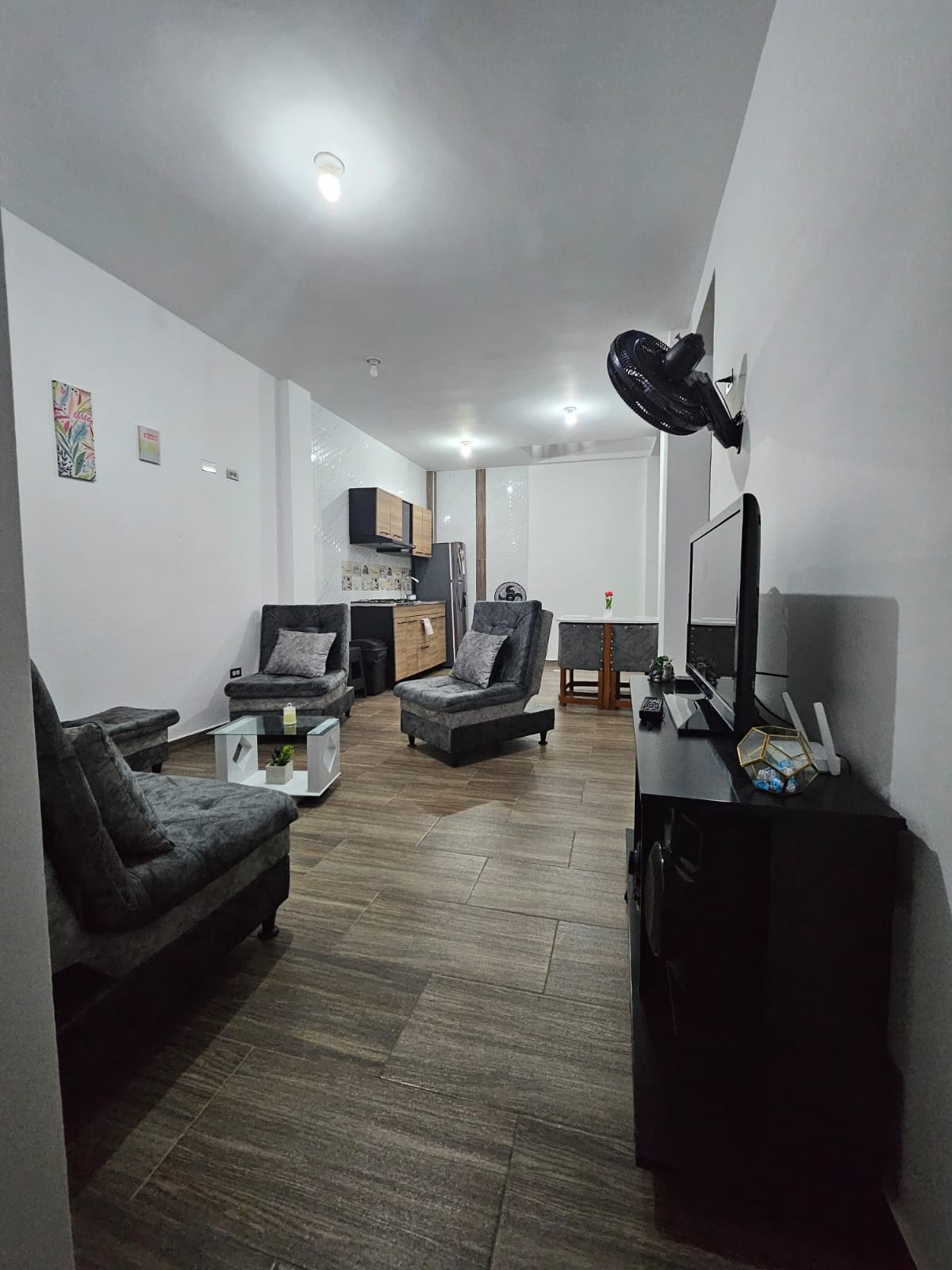 Vive una experiencia inolvidable! Acogedor apartamento en el piso 7 con ascensor, ideal para familias o grupos. Cuenta con cerradura inteligente para un acceso autónomo, parqueadero privado, balcón, aire acondicionado, wifi y juegos de mesa para una estadía más agradable. El conjunto ofrece piscina (con horarios de la administración), gimnasio, zona BBQ y parque infantil. Somos pet friendly 🐾. Totalmente equipado para que disfrutes comodidad, descanso y diversión en un ambiente familiar.