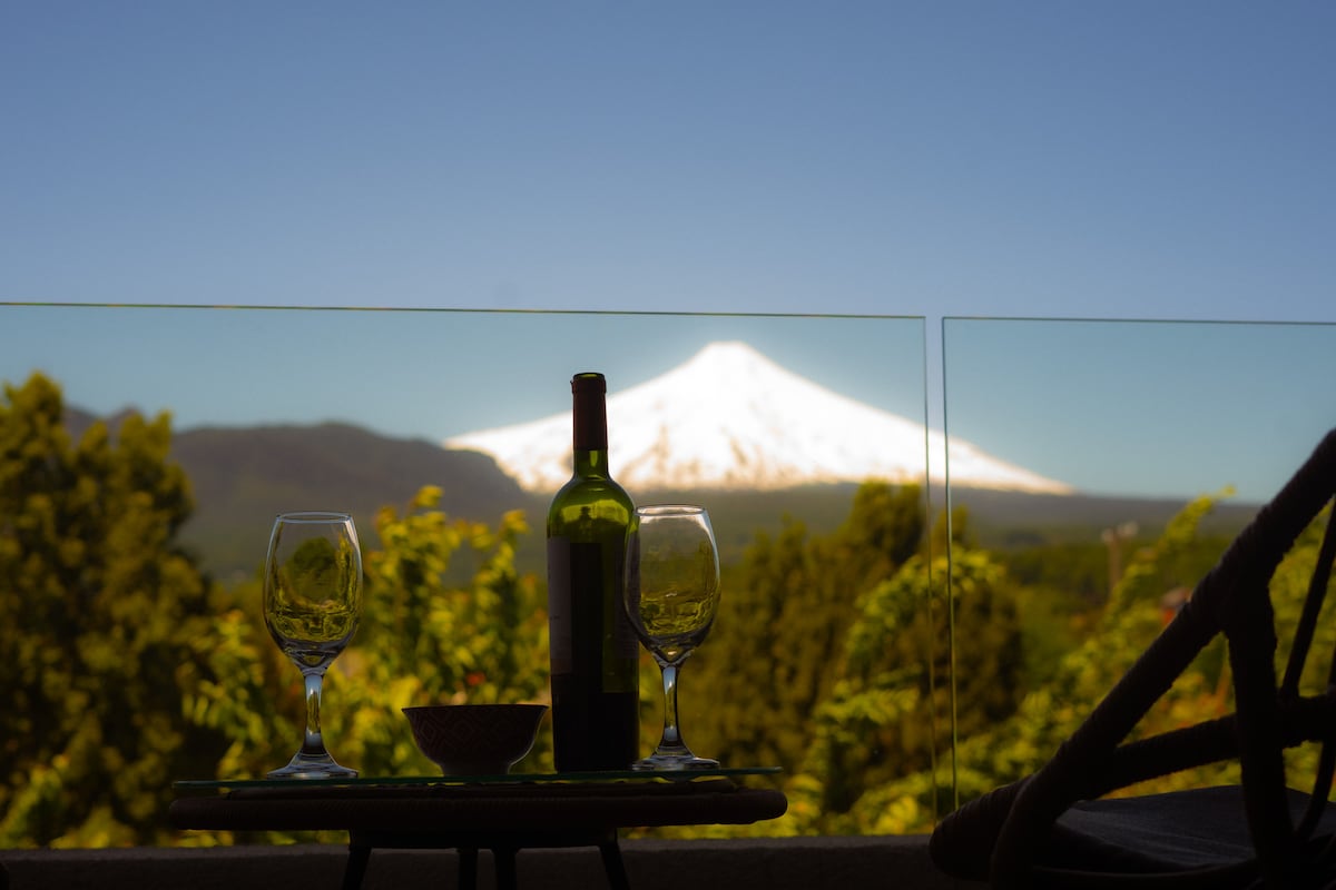 Beautiful Cabin in the Forest, located in the Lefún area between Villarrica and Pucón. It offers a stunning view of Villarrica Volcano, surrounded by native forest and birds. Every day you can hear Loicas and Chucaos. Fully equipped so you can enjoy your stay, disconnect, and relax. A lovely stream runs through the property. We recommend taking nighttime photos of Villarrica Volcano next to the wood stove with the panoramic view our cabin offers. We are sure you will love it!