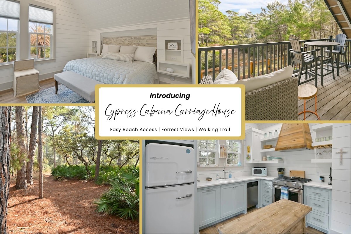 ✨Introducing ~ Cypress Cabana Carriage House Renovated Couple Retreat | Walking Trail | Forest View | Bikes Need to get away? Cypress Cabana Carriage House is the perfect 1-bedroom, 1-bath home that sleeps 4. Public beach access is a 5-minute walk. Your balcony enjoys views of the Pt. Washington State Forest. You have a private entrance, full kitchen, separate bedroom with a king bed, modern bathroom, and 2 cruiser bikes. This is the perfect couple's escape with luxurious accommodations.