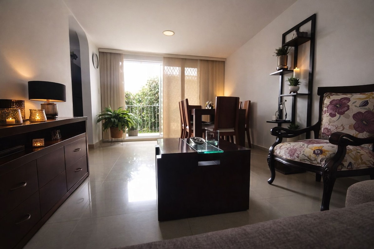 Enjoy your days with your family or friends. Apartment located in a privileged area close to everything you need. It is a space designed for comfort, where you can work, study, or spend an excellent vacation. You will find a fully equipped kitchen, blackout curtains, internet access, Smart TV, work desk, 2 bedrooms, and 2 bathrooms. You will be in an exclusive area of the city, surrounded by shopping centers, universities, supermarkets, and hospitals.