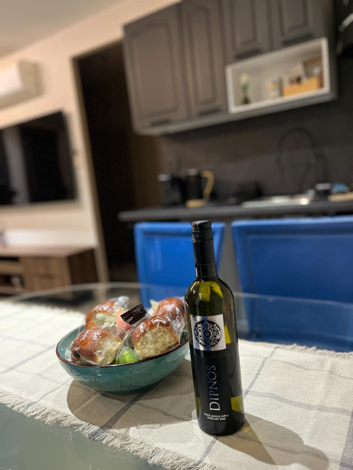 Το διαμέρισμα είναι πλήρως ανακαινισμένο, ευρύχωρο,καλαίσθητο, φωτεινό, διαμπερές. Απέχει από την κεντρική πλατεία της πόλης 80 μέτρα. Έχει κλιματιστικό 24000btu στον ενιαίο χώρο και ανεμιστήρες οροφής στα υπνοδωμάτια. Σύνδεση internet fiber στα 300Mbps ταχύτητα και smart TV 55 ιντσών. Ο χώρος του αίθριου το κάνει μοναδικό.