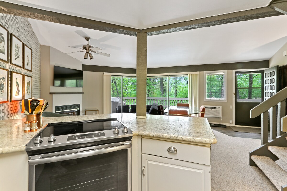 Discover the freshly renovated one-bedroom condo at the charming Hayloft Lodge, located a few miles from downtown Lake Geneva. Unwind on the comfy couch, enjoy a restful night on the cozy queen bed, or head downstairs for a fun game of pool. This end unit features a kitchen with a mini fridge & freezer, a two-burner stove, a Keurig coffee maker, & more! The fitness area is available year-round, while the pool is open seasonally. A washer & dryer are conveniently located just outside your unit.