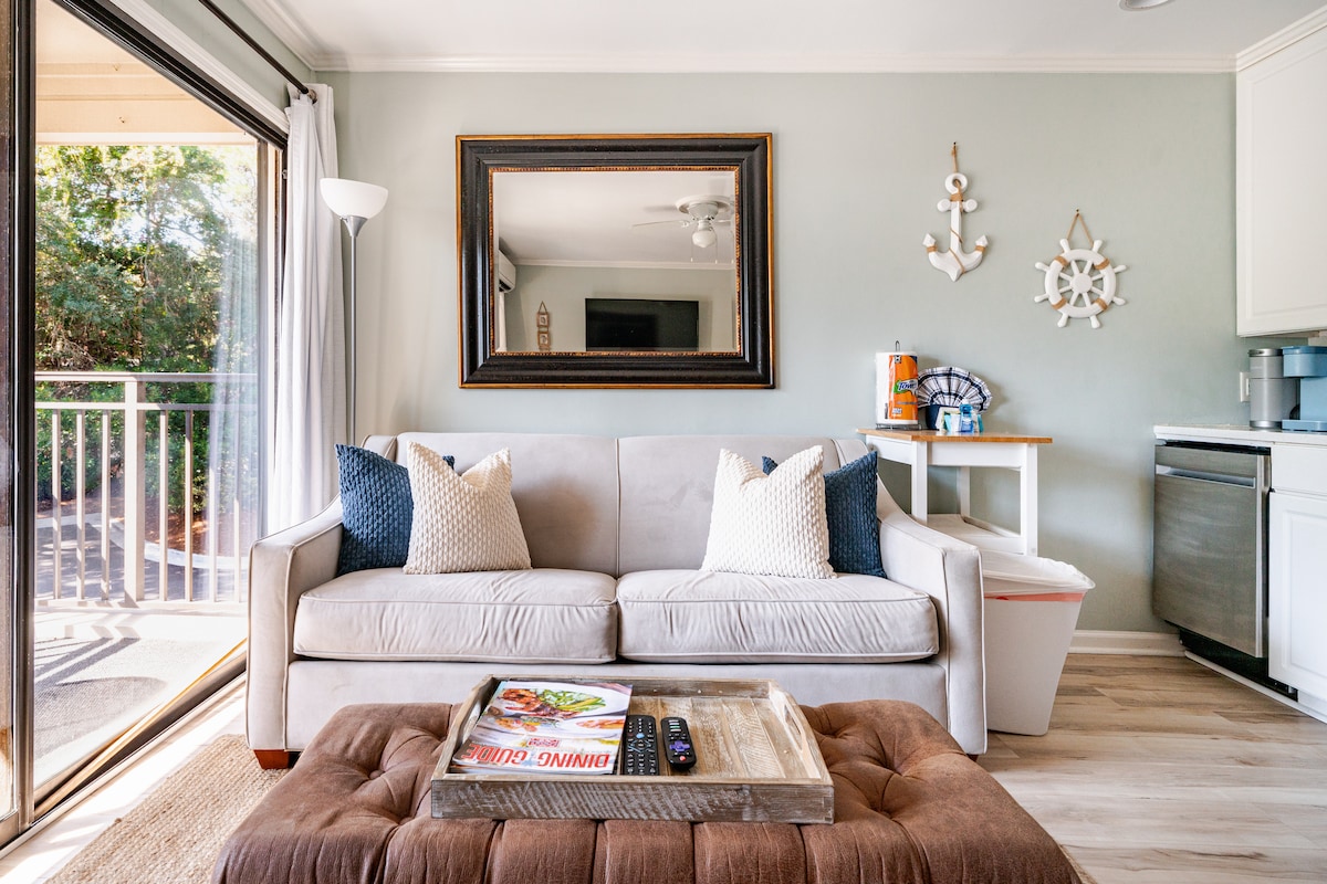 Freshly decorated in coastal decor, this beachfront condo sleeps up to 4 and is located right by Coligny, Hilton Head's chicest neighborhood. Freshly furnished unit includes a spacious king bed and queen sofa sleeper, both fitted with luxurious memory foam mattresses. Just a three minute walk to sandy beaches, and you can catch a glimpse of gentle tides from your own private balcony! The villa is full of amenities including beach chairs, beach umbrella, games and much more.