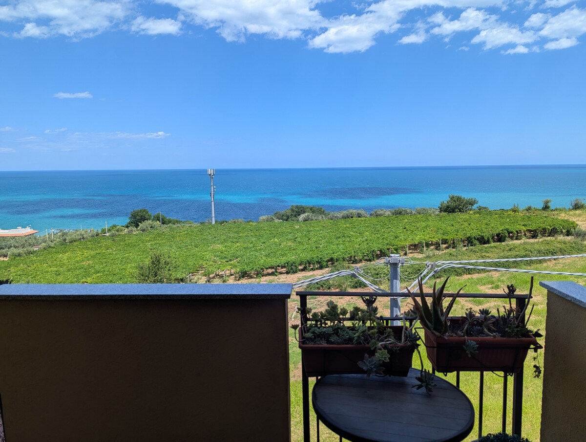 In the heart of the Abruzzo countryside, an apartment surrounded by vineyards and olive groves, with stunning views of the sea and mountains. Just 5 minutes from the beach, it is perfect for relaxing in nature. Peace, authenticity, and beauty await you, close to everything but far from the chaos. ⌚ Check-in by appointment 💶 City tax payable in cash upon arrival 🐾 Small pets are allowed only upon request and prior approval. A €25 supplement is to be paid in cash upon arrival.