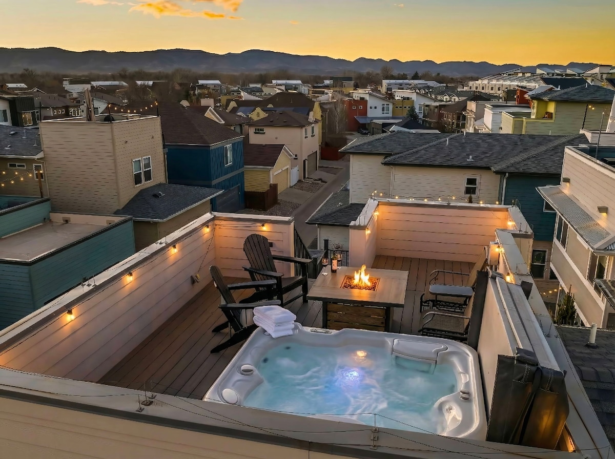 Soak in the rooftop hot tub while the sun sinks behind the Rockies. This five-level retreat sleeps big families in four private bedrooms and two lounge spaces. Why you’ll love it: Two expansive rooftop decks with 360° views Upper deck is the tallest of any Airbnb in Fort Collins Hot tub + wet bar for sunset socials Walk-to-downtown, breweries & Poudre trails Chef’s kitchen, fast Wi-Fi, Mini Golf Course Designed for memorable group getaways—just bring your sense of adventure!