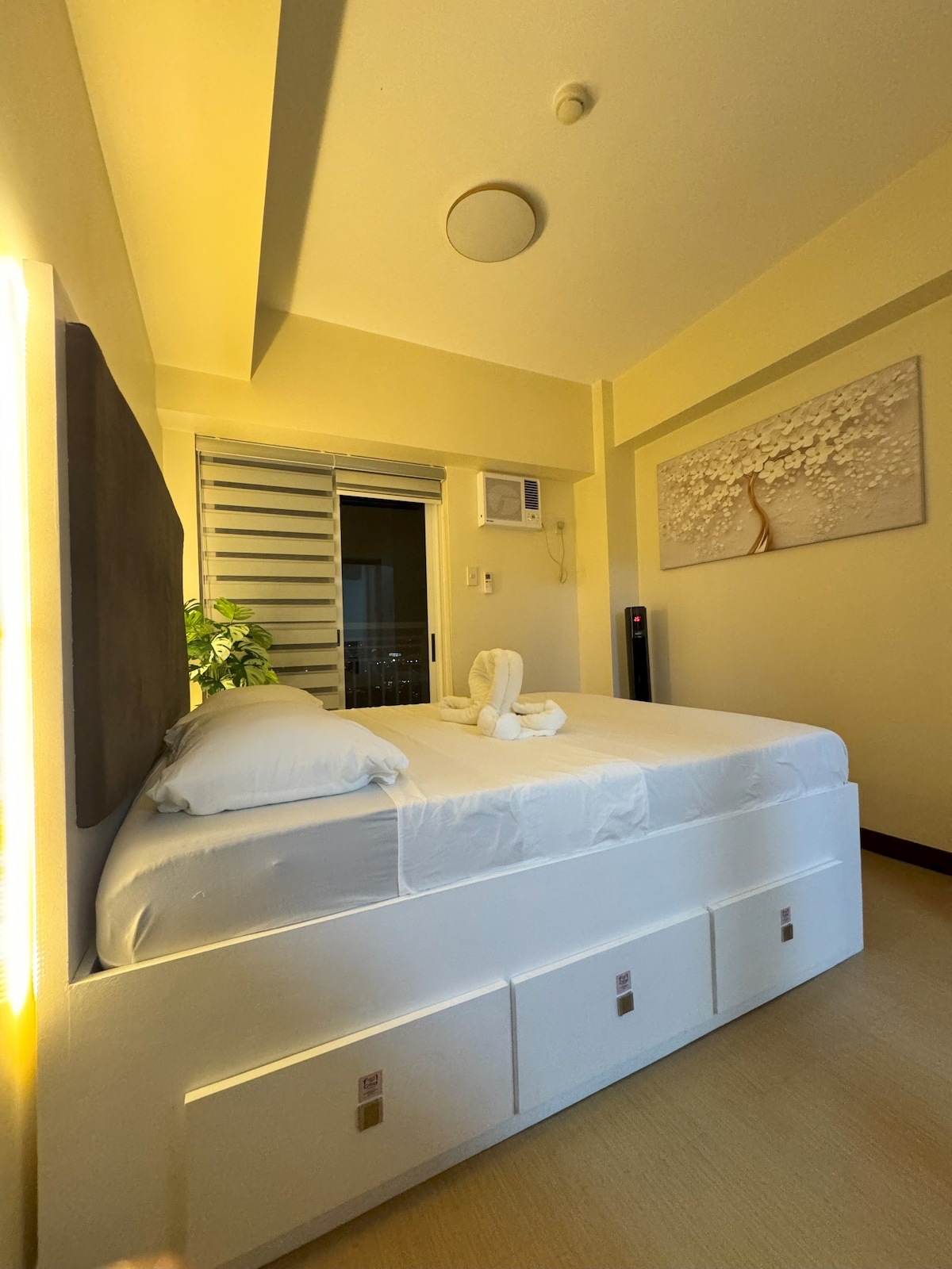 Welcome to our airy contemporary and Mediterranean-inspired Tahanan, a 25 sqm studio unit in Mandaluyong, just a short walk from Rockwell and Powerplant Mall! We’ve designed our space to provide a comfortable stay while capturing stunning sunset views, as well as views of Mandaluyong and Makati from our balcony. Whether you’re visiting for work, leisure, or a mix of both, our well-equipped Airbnb is the perfect base for exploring the vibrant cities of Mandaluyong and Makati.