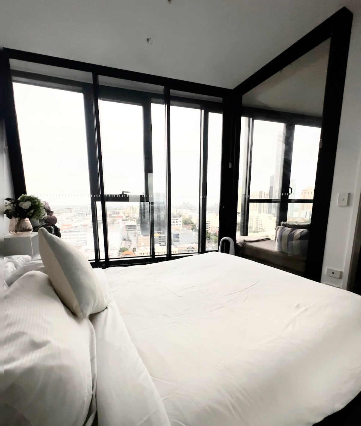 This stylish apartment within the Queens Wharf precinct is located next to Brisbane’s Star Casino offering breathtaking river and city views through floor-to-ceiling windows, a cozy open-plan living area with elegant furnishings, a serene bedroom with warm tones, and a private balcony perfect for unwinding😴. Its prime location places you steps from world-class dining, entertainment, and scenic riverside walks—blending comfort, luxury, and convenience in one perfect urban retreat✨.