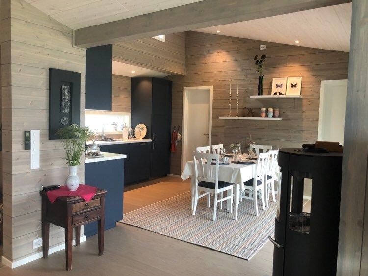 Ferdig oppreide senger og gratis sluttrengjøring. 96 m2 stort hus med stor terrasse, grill og nydelig utsikt. Terrassemøbler. 3 soverom. Fantastiske solforhold. Ligger på gård i drift med melkeproduksjon. Parkering rett utenfor dør. Rullestolrampe, alt på et plan. Muligheter for å se både nordlys, elg og rådyr fra terrassen. Smart-Tv og internett inkl.,Sprinkelseng og stellebord. Nært skog, turmuligheter og skiløyper. Laksefiske og småviltjakt i nærheten. Egen ladekabel bil må medbringes.