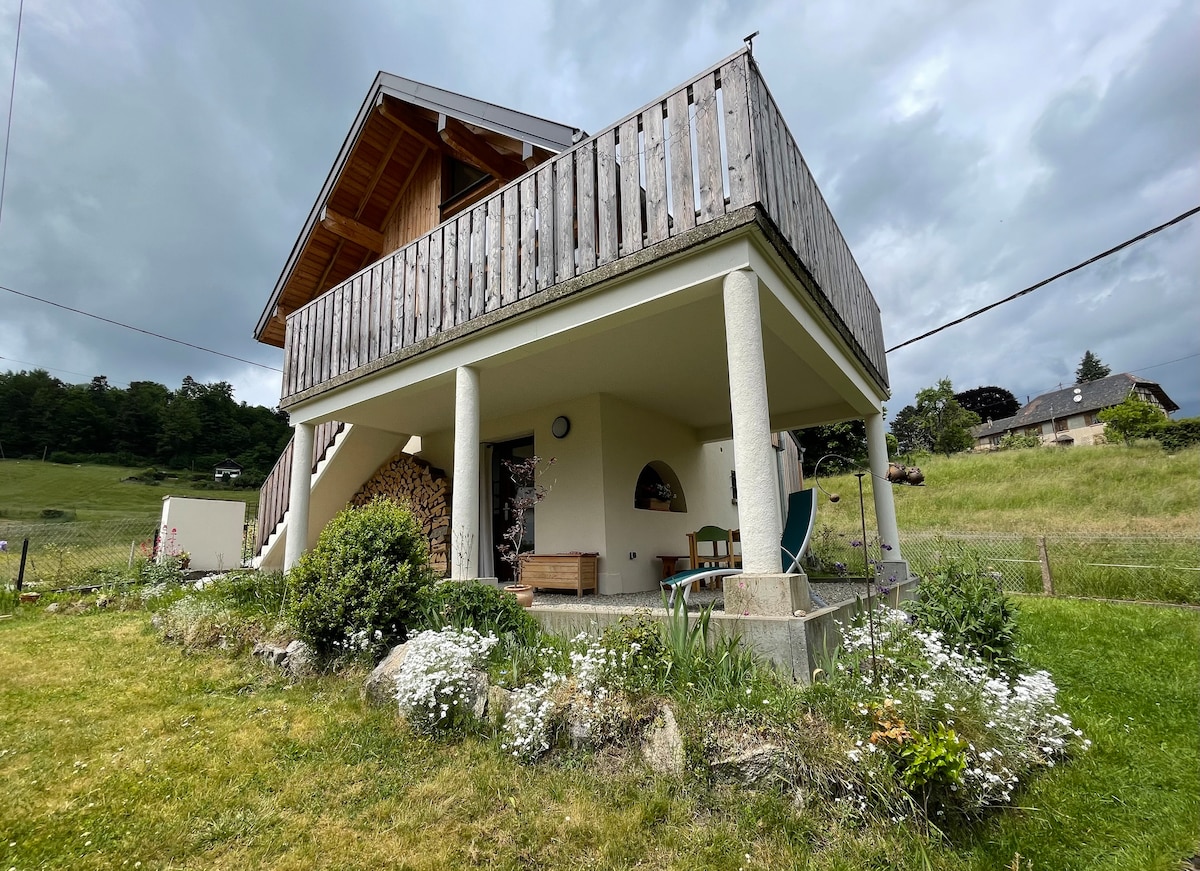 In the heart of nature, we welcome you to our cottage with a warm and cozy atmosphere. Our house is located in the Col de Fouchy, close to all the amenities of the village, but especially tourist places: - in the VAL D 'ARGENT, the mineral exchange, the patchwork but also the Parc Minier TELLURE - the Castles - the Volerie des Aigles, the Monkey Mountain - Europapark, Cigoland Come and discover our beautiful Christmas markets as well as the ski resorts this winter.