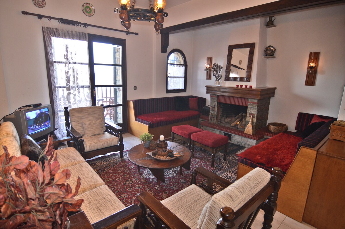 Relax and experience country life in a stylish house surrounded by fields, enjoying an uninterrupted view of Mount Olympus. Discover nearby places of interest whether natural, historical or cultural, or take a break in the village square under the huge plane tree, enjoying each moment as the bell-tower chimes the hour in the background. Need a change of pace? Only a five-minute drive to Kozani. Witness a place where the Seasons still differ, without feeling isolated or sacrificing comfort.