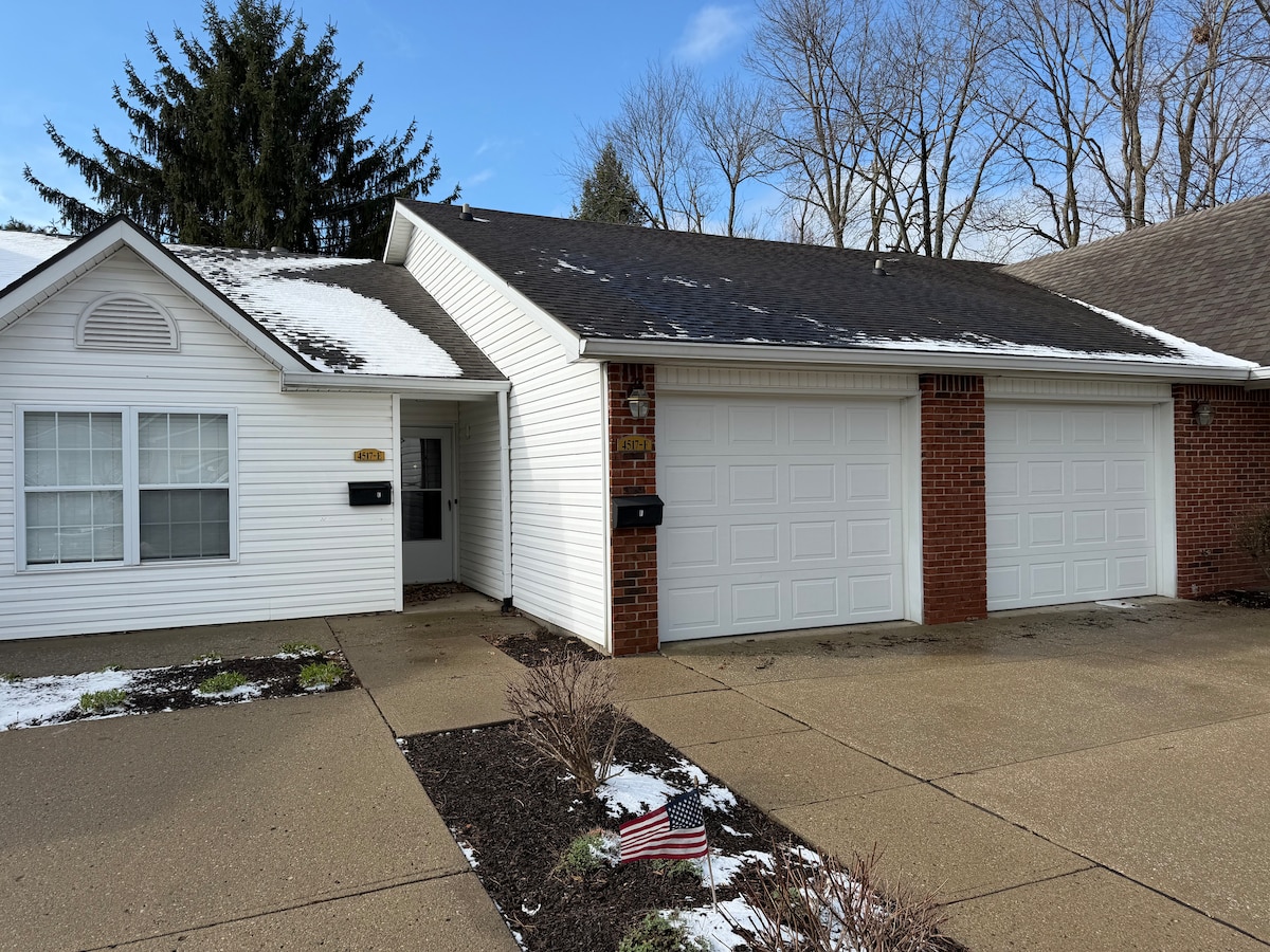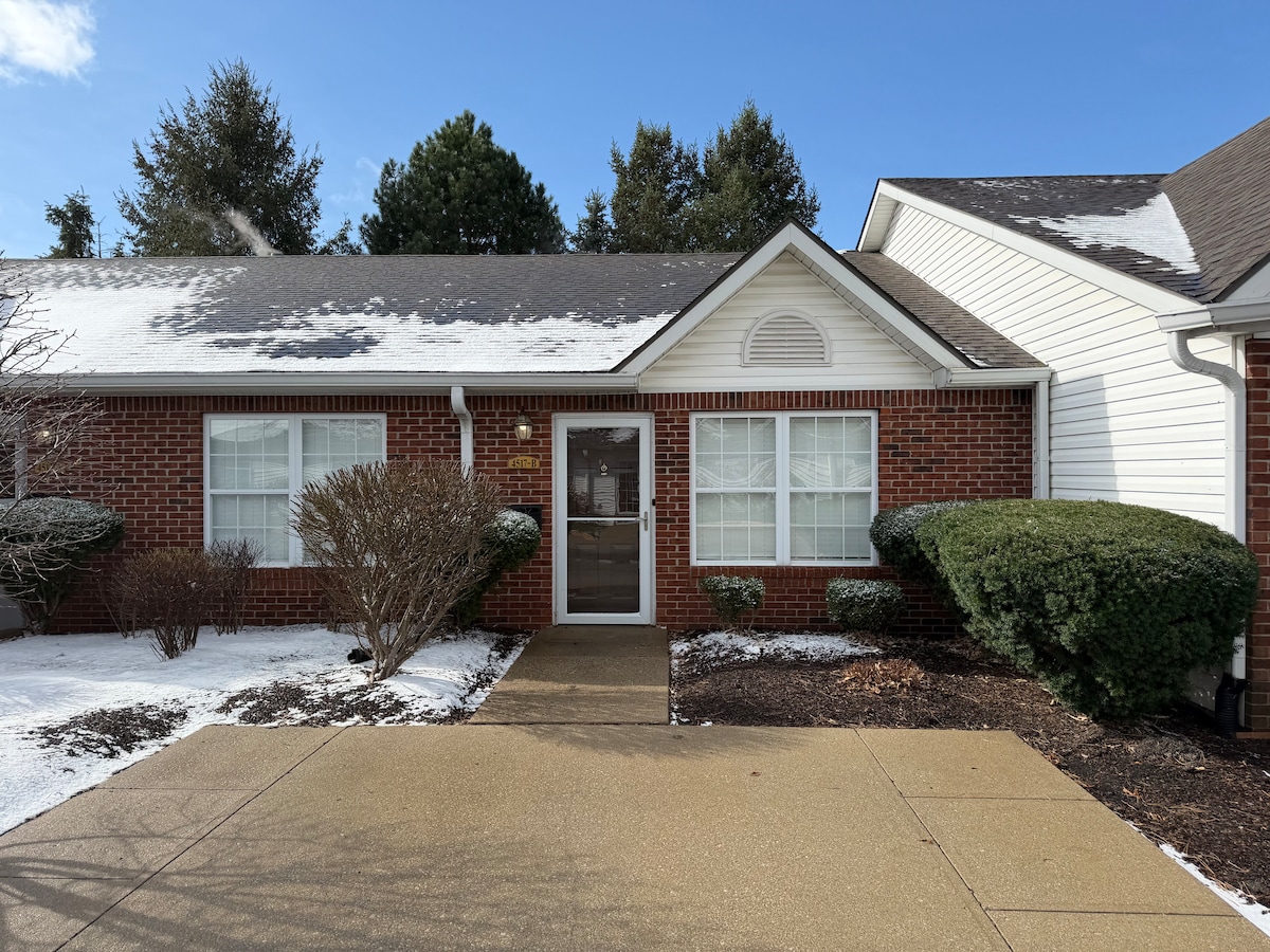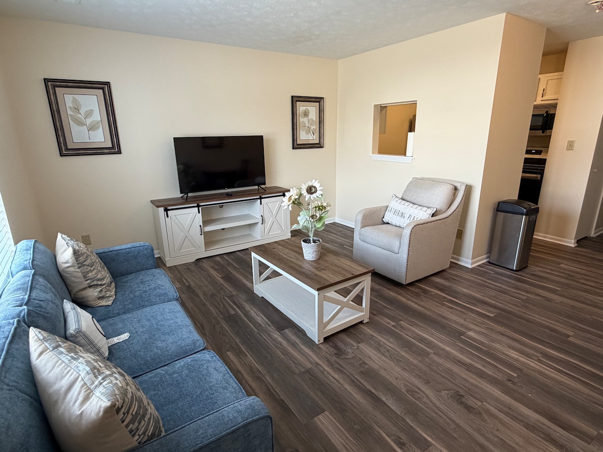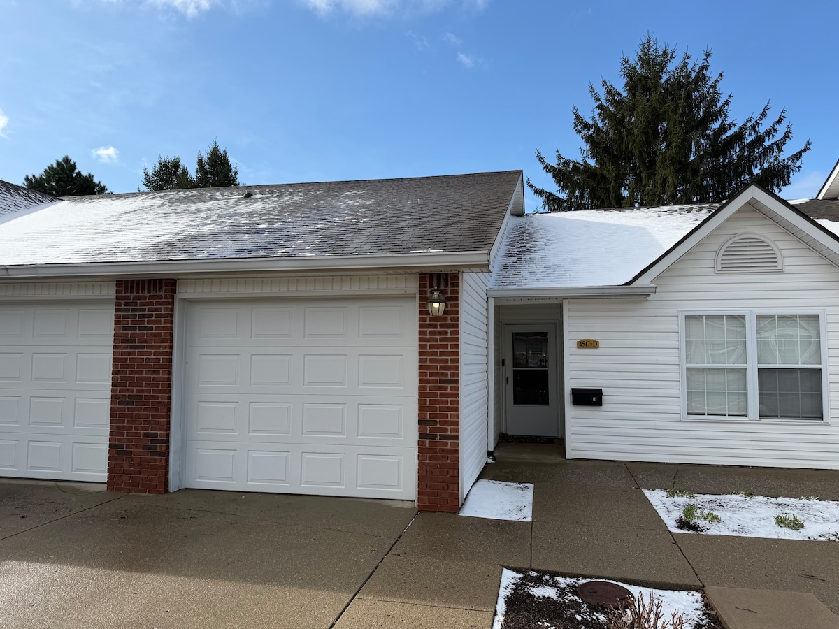 As a Guest Favorite and hosted by 4.8+ Superhost, this charming 2 bedroom townhouse in the heart of Speedway offerst the perfect blend of cozy comfort and unbeatable location. Relax on the spacious front porch and feel right at home in this classic blue beauty-ideal for race fans, families, and Indy explorers. Step inside a bright, inviting living area with comfy seating, streaming TV and fully equipped kitchen while the dining area is for gathering. Review our house rules prior to booking! 😊