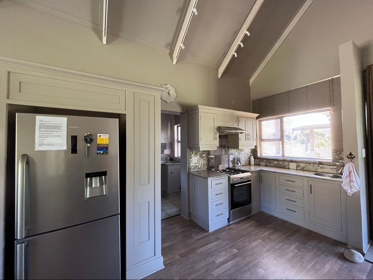 360 degrees mountain views. Tranquil and serene. Come and relax whilst enjoying one of the most beautiful towns in South Africa. Clean and beautiful kitchen, lounge and 2 bedrooms with en-suite bathrooms. HOT TUB. Porch and Braai. Only 5km from the centre of Town but feels as if you are far away with the best uninterrupted views. Enquire today if you have any questions or assistance in your stay with us! 🤍 (please note that this unit is situated next to another but is still completely private)