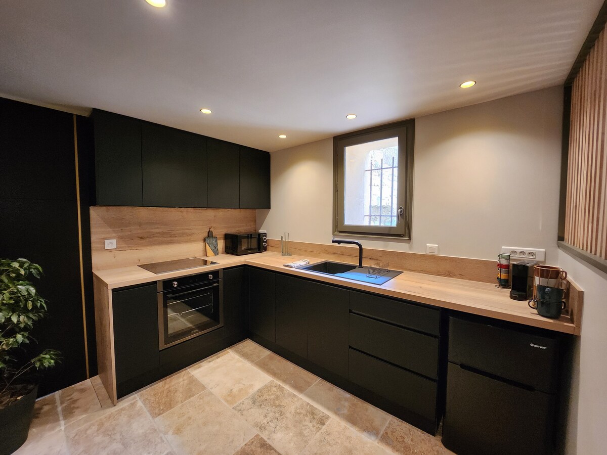 Located in the charming and peaceful village of Roujan💚 come and enjoy and relax in our studio. The accommodation consists of a large kitchen/living room, the bed next to it is separated by a wooden partition and 1 bathroom with wc and shower. To get there you will walk through the pretty historic streets of the village😊. Free parking is about 150m away. Great! Looking forward to having you stay with us!