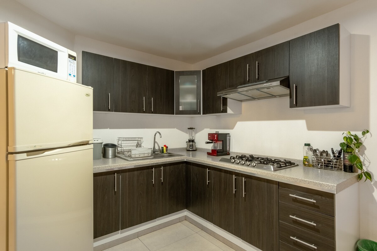 Take it easy at this unique and tranquil getaway. Are you coming for a vacation or for work? This option is for you. Loft with all the comforts to spend an incredible stay. In an exclusive area where you have the best roads and access to any point in the city. The apartment is fully equipped, has a double bed and a single sofa bed, a work desk, Wi-Fi, a fully equipped kitchen, recreation areas and exclusive parking for one car.
