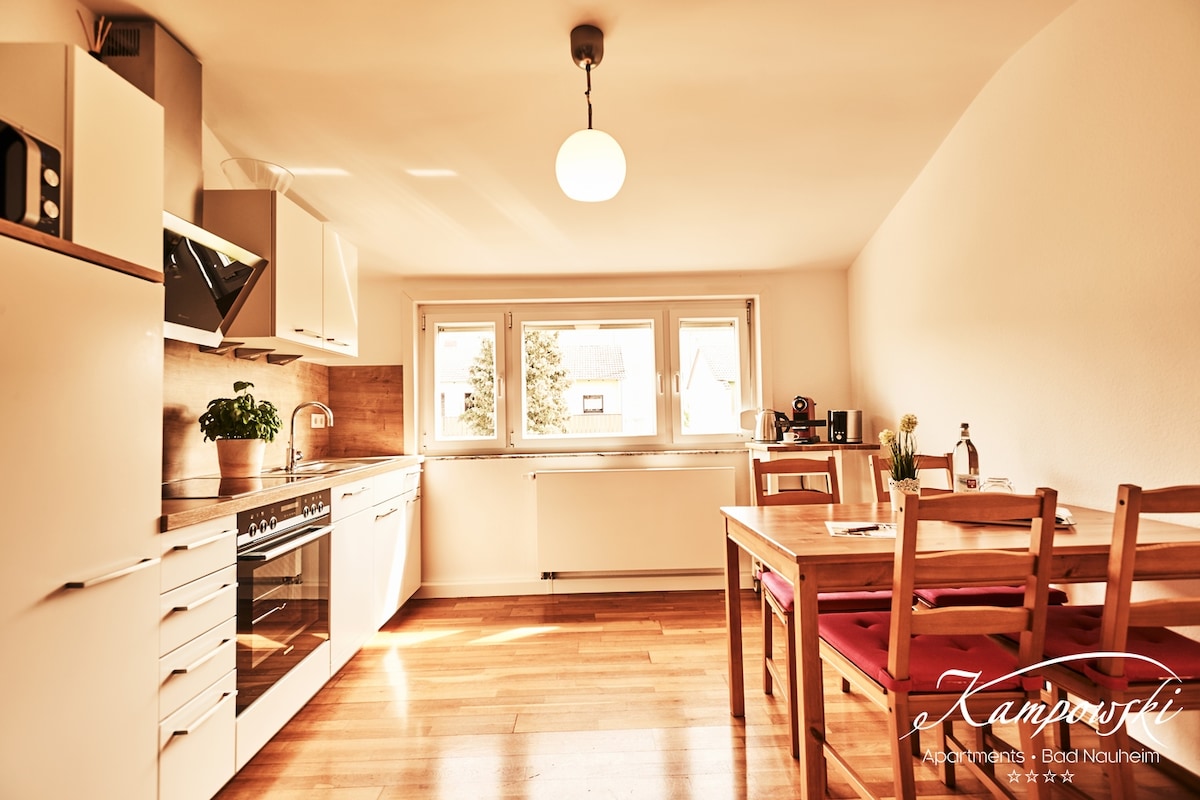 Welcome to the pearl of the Wetterau! Our charming apartment has everything you need. • 2.00 x 2.00 m king size bed • 2x Smart TVs • Netflix subscription • 2 x 1.00 x 2.00 m box spring beds • Coffee filter machine • Fully equipped kitchen • Washing machine • guaranteed parking space Everything is very new, high quality and lovingly furnished.