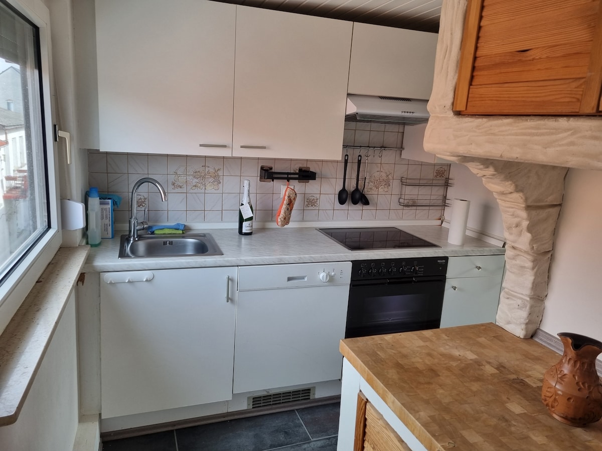 The apartment is quietly located in the annex of our restaurant "Tacheles," directly next to Robert-Heck-Park. It invites you to relax and recharge. Feel at home, without work. But you are also a minute's walk from the old town and the Lahn, five minutes from the city center and ten minutes by car from Limburg. There are various sights, hiking and cycling trails in the vicinity and in summer all kinds of water activities.