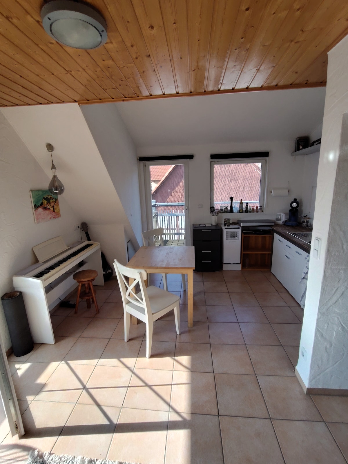 Relax here in this stylish and quietly located place. Designed with a lot of love for detail and high-quality furnishings, we have made the accommodation something special for you. There is about 80 square meters of living space with a small terrace overlooking the greenery of the front Odenwald. Sink into the cozy 180 cm box-spring bed (super comfortable mattress!) after an active day in a deep sleep. The property has a separate entrance and parking.