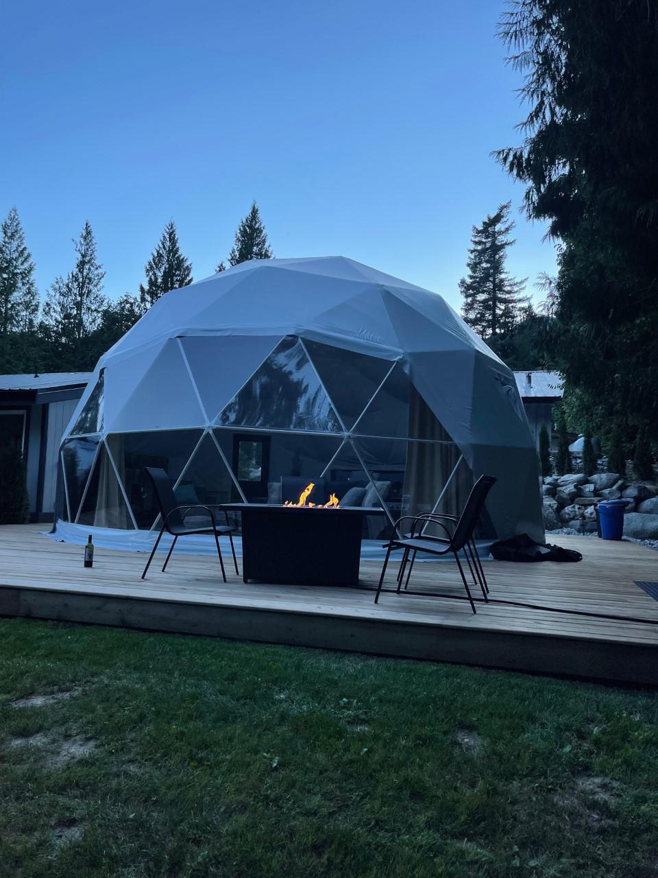 Romantic Geodome glamping at it’s best! Gaze at the sky as you drift off to sleep in our private and peaceful *off-the-grid* Geodome in the North Shuswap. Our private acreage is mostly undeveloped so you can get back to nature and enjoy an uncrowded piece of Shuswap Paradise. Short 2 min drive, 30 minute walk, to a public beach. Geodome glamping is great If you are comfortable with back country camping and looking to reconnect with nature but to be clear it is essentially a tent in the woods.
