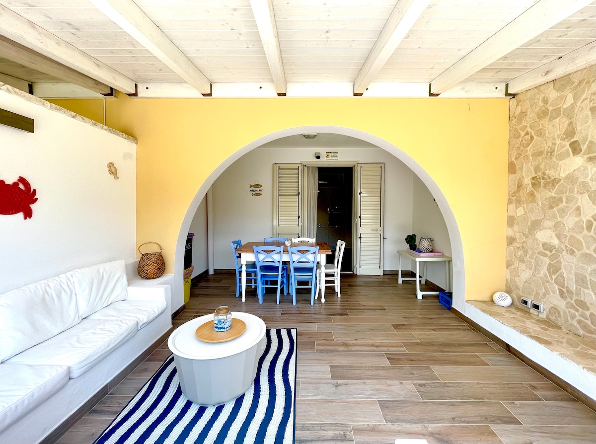 The house "Perla dell 'Acquaviva" , in the middle of the Otranto-Leuca natural park , offers an enviable private access to the sea and the privilege of entering the waters of the cove through a comfortable rocky staircase different from the other bathers. The property consists of bathroom, bedroom, kitchen-living room, porch overlooking the sea. You will be welcomed by large outdoor spaces with a relaxation area among tall trees and the relaxing roar of the waves.