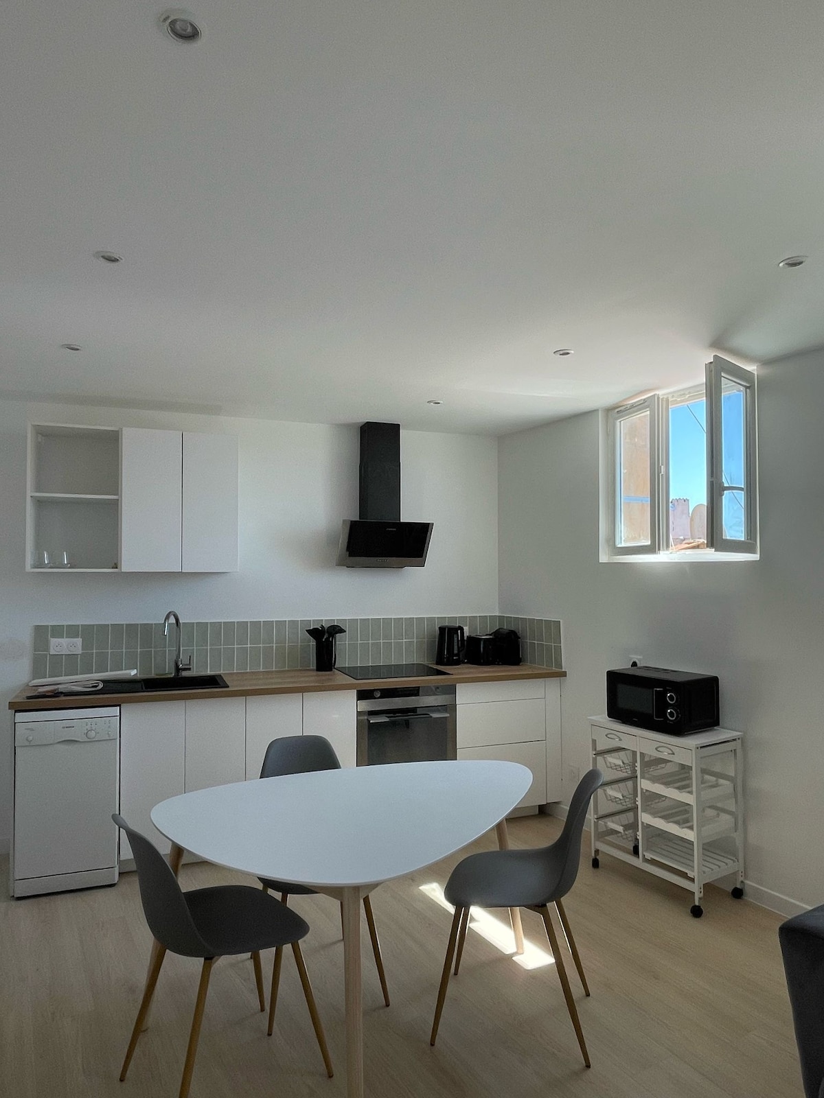 75 m2 air-conditioned accommodation, peaceful neighborhood, refurbished, in the city center with all amenities and shops within walking distance (500 m from the train station and the sea) Living room with large sofa, 4K OLED TV connected with Disney+ (2 GB fiber) New kitchen equipped with induction stove, rotating heat oven, microwave, dishwasher, washing machine, Nespresso capsule machine... Bathroom with walk-in shower Bedrooms with dressing room, new 160 bedding and a desk