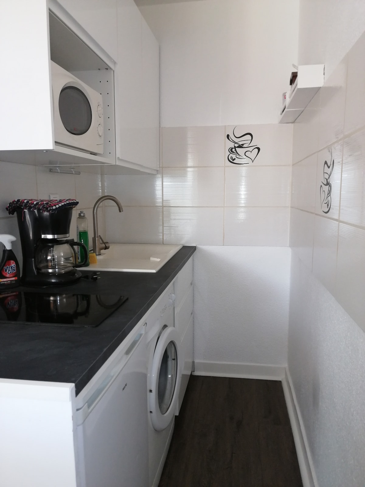 Night corner with double bed. Living room with sofa bed 140 cm. Bathroom with shower, washing machine. Kitchenette Wi fi. Climatisé. All linen is provided. Umbrella bed loan, baby bath and chair on request free of charge. Possibility to accommodate 2 more people on request. N tariff surcharge for children. It is located 700 m from the festival and beach palace. 500 m from the Cannes train station and 300 m from the Forville market and the Suquet parking private