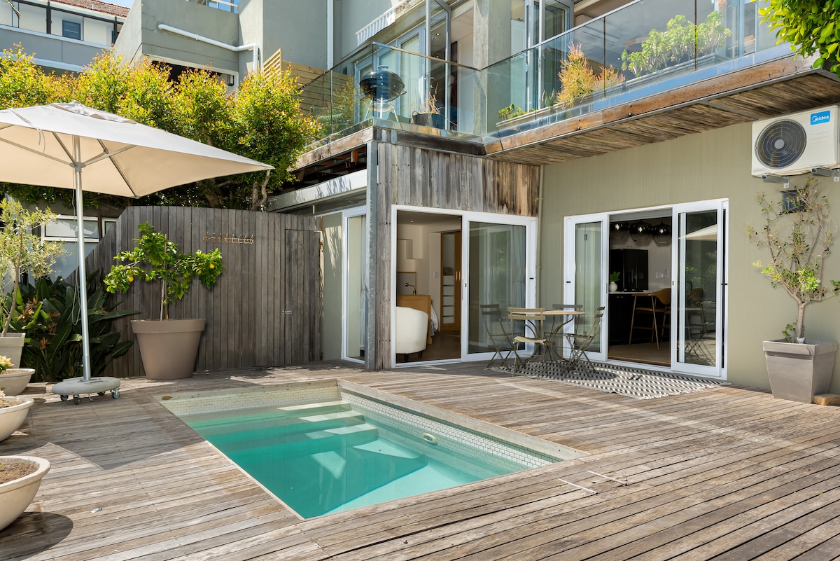 Bungalow 21 feels like a hidden gem amongst Cape Town’s most prestigious coastline. Nestled above Clifton 3rd beach, the bungalow offers sweeping ocean views while you listen to the waves tumble in the bay. Within easy walking distance or a short drive to nearby shops, restaurants and bars, yet secluded enough to unwind to in peace, with its private swimming pool, which is a rare find within Clifton’s prestigious bungalows.