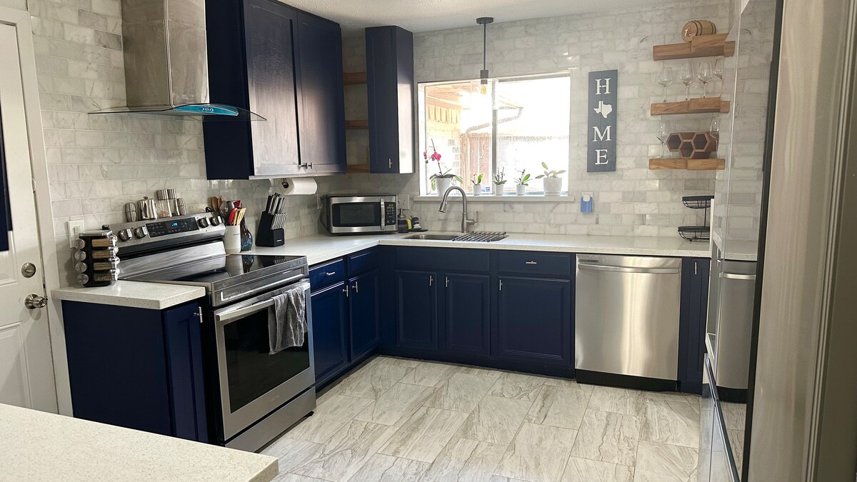 Bring the whole family to this great place with lots of room for fun. 5 minutes away from Sugarland. Peaceful and quiet neighborhood. Kitchen just completely remodeled. Fenced in back yard for your pups to play around. 1 king size bed, one queen size bed, two recliners in the couch, 3 tvs, fast wifi with an office to get all your work accomplished.