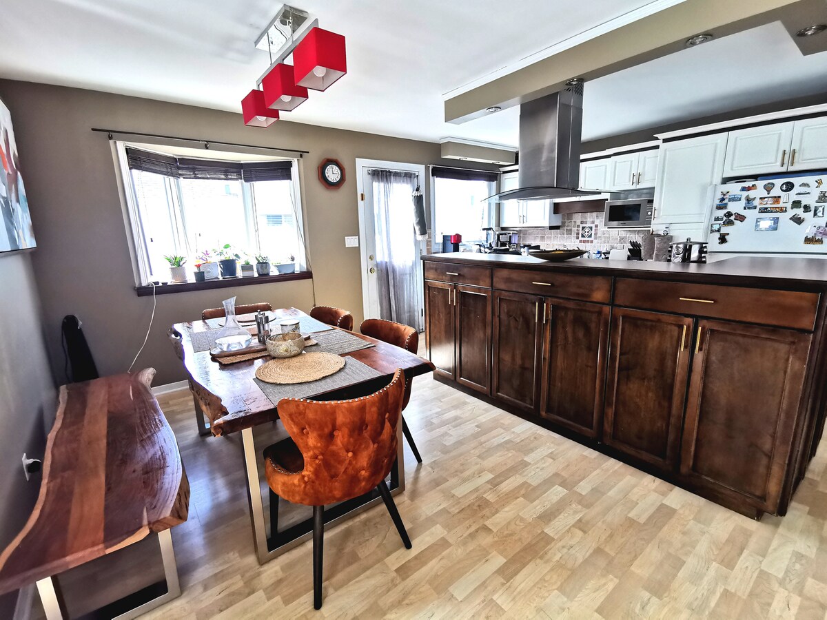 Welcome to our sunny house! Our unique, beautiful, and newly remodeled home is the perfect place to escape and enjoy a peaceful getaway. Located on a quiet street in the heart of the city, it offers easy access to shopping, restaurants, and local attractions. Whether you're looking for a romantic weekend, business trip, or a family retreat, our house awaits you! Off the 401 hwy Walking distance to the Coach Bus Terminal 5 mins to Via Rail Station 10 mins to downtown and 1000 Islands Cruises