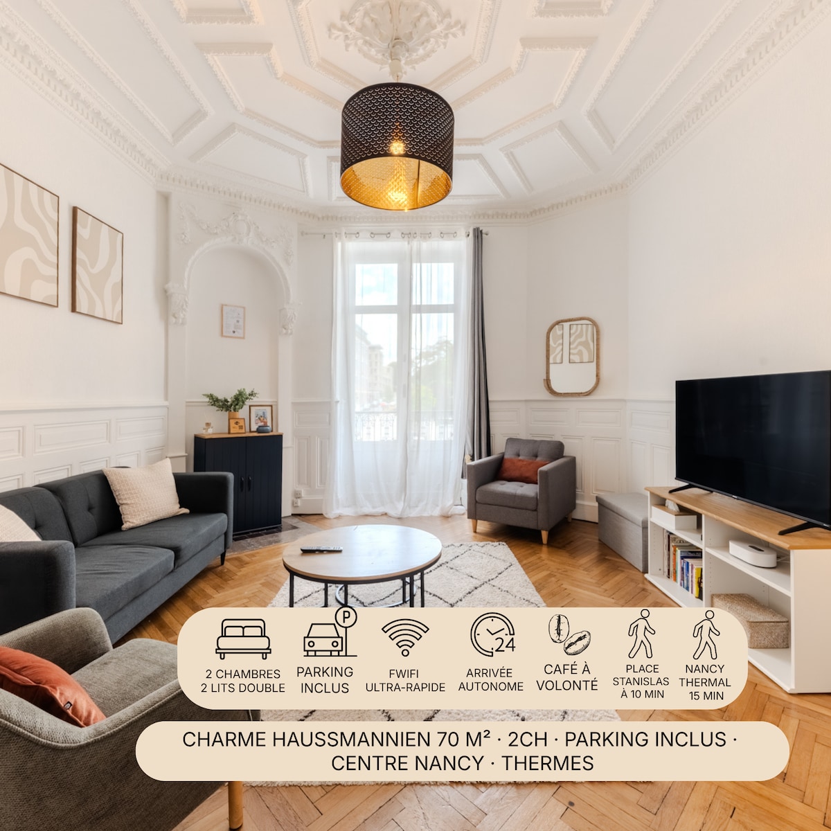 Welcome to Nancy BnB thermal 1! Located on the raised first floor, this modern apartment is designed and equipped to offer you all the comfort you need. 🚅The apartment is less than a 15-minute walk from the train station and less than a 10-minute walk from the new thermal center.🗽 What's more, it's a 20-minute walk from Place Stanislas. We look forward to welcoming you!