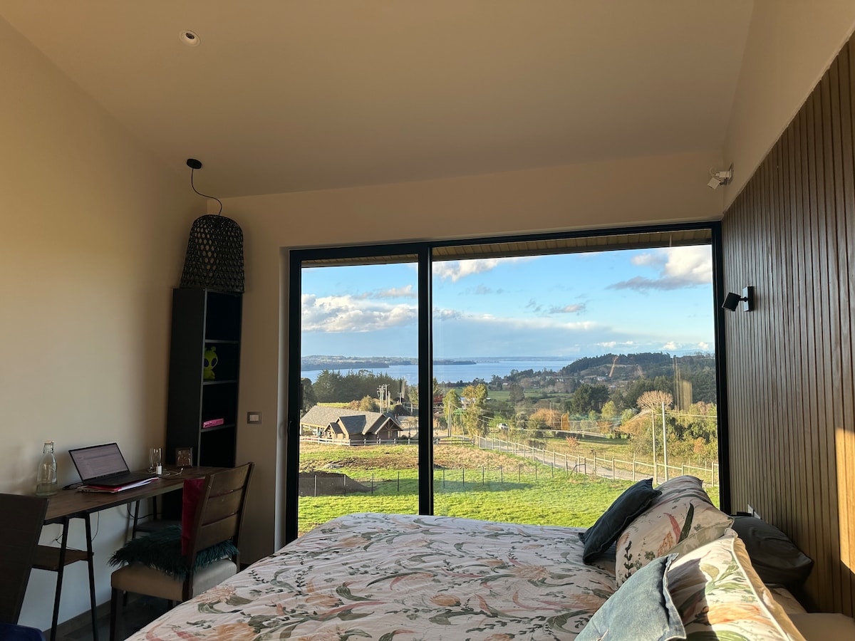 A dream place to disconnect from the noise, traffic and stress, and spend a few days relaxing with a view of the lake, volcanoes and pastures with cows. Within a radius of about 2-3 km, there is a nice beach, and a village with the basics. Frutillar bajo is 10 minutes away, Llanquihue 15 minutes away, and Pto Varas 15-20 minutes away, all close and without traffic jams. Quiet house, with the best energy and sustainable: you can compost, recycle, and provide yourself with solar energy if the days allow it, as well as harvest from the garden and greenhouse.